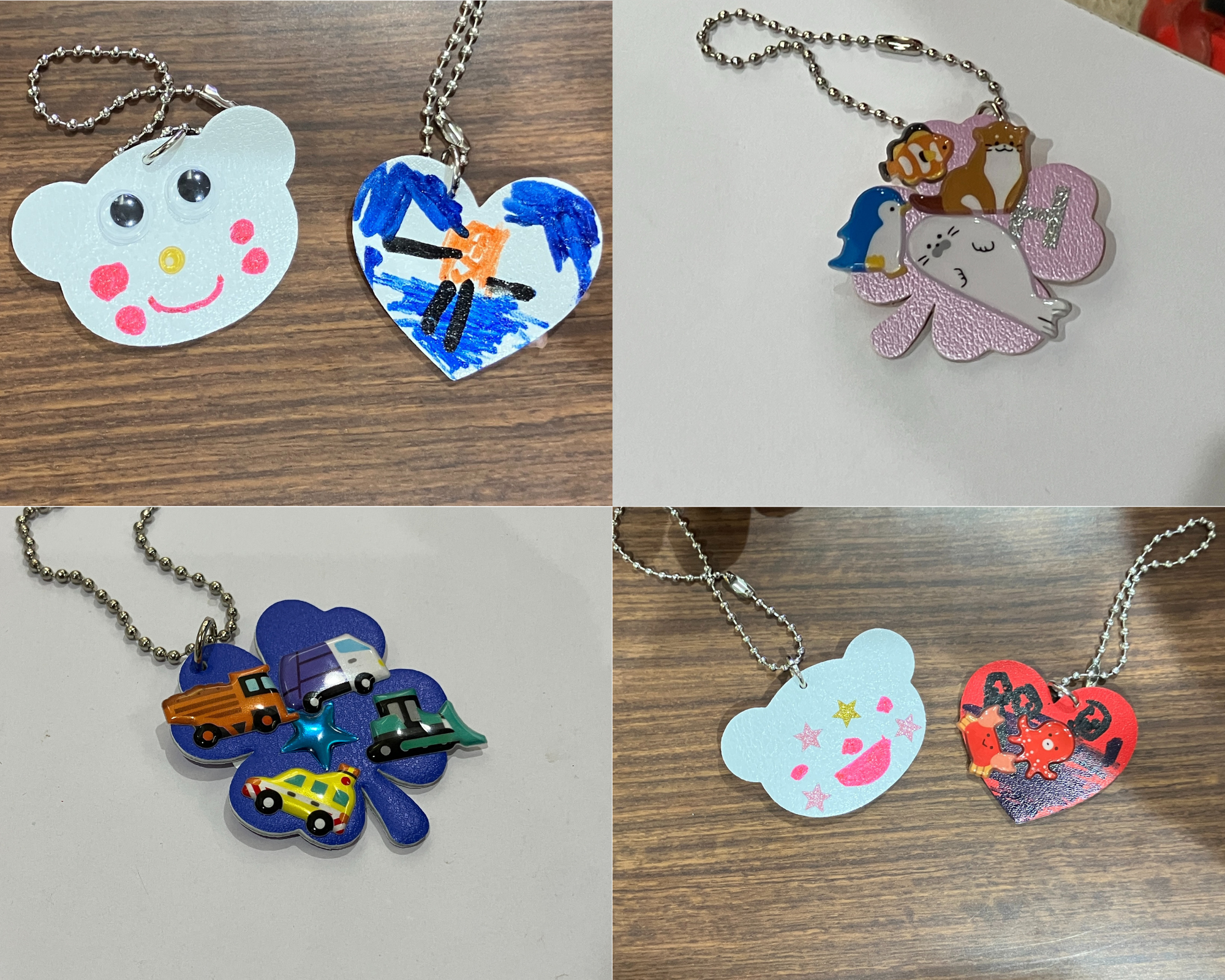 子どもたちは、パネルのヒントをしっかりと確認しながら、真剣な眼差しでクイズに取り組んでいました。また、人工皮革「コードレ」の端材を使ったチャームは、子どもだけでなく大人からも「かわいい!」と大好評。子どもたちは好きなパーツを選んで、ペンやシールで飾り付け、自分だけのチャームが完成すると、早速カバンにつけて笑顔を見せてくれました。